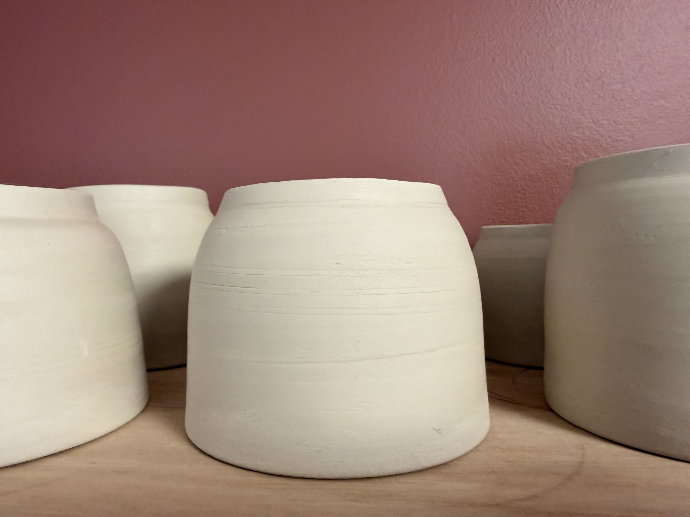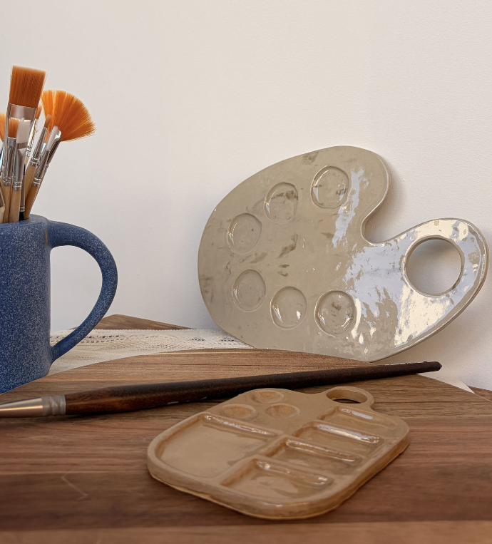 Les pièces proposées pour la peinture sur céramique sont toutes fabriquées à l’atelier. Elle sont en grès blanc.
